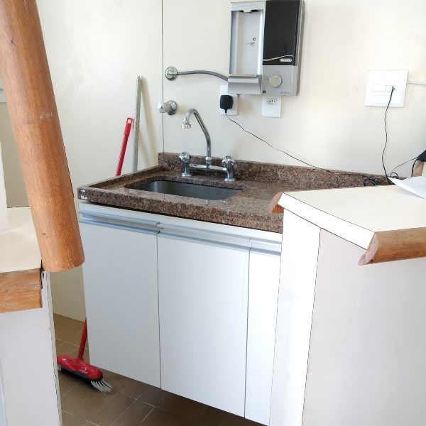 Cozinha: Tipo americana com balcão, ideal para refeições rápidas e práticas.