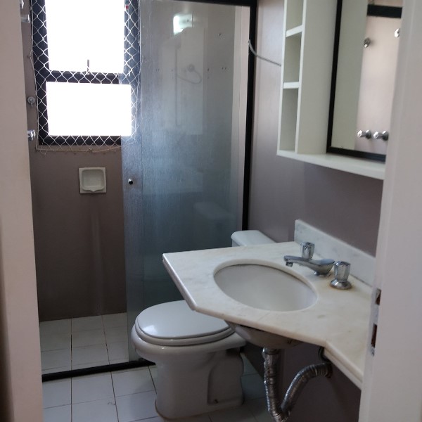 Banheiro: Equipado com box de vidro e pia com tampo de mármore, garantindo praticidade e elegância.