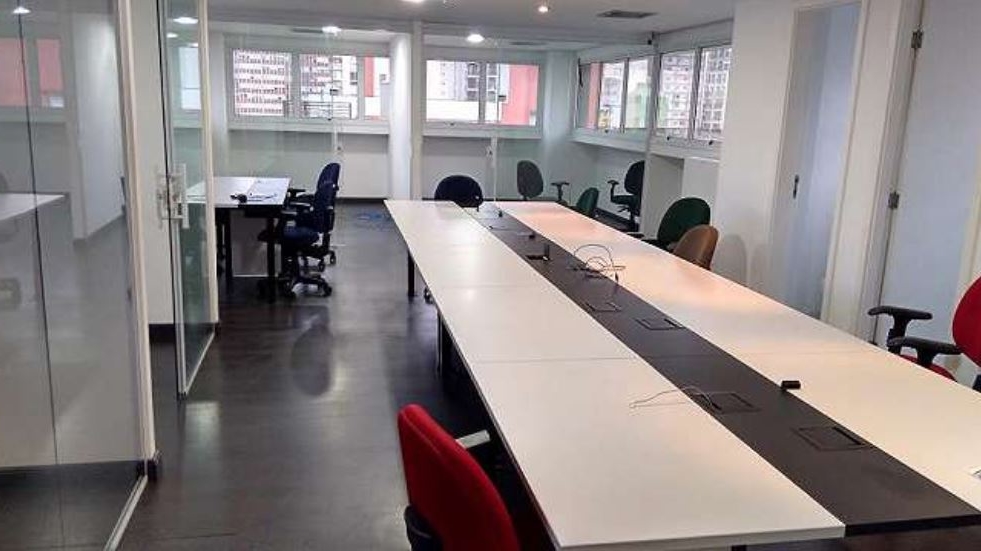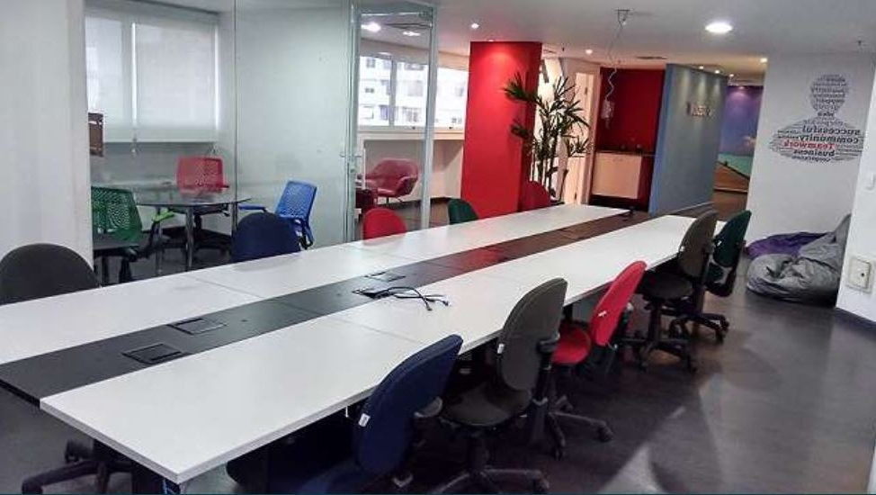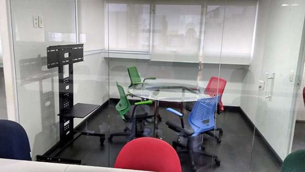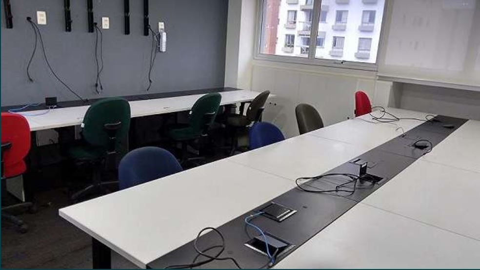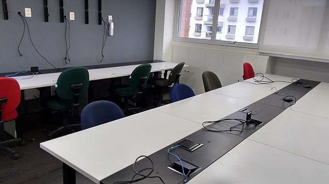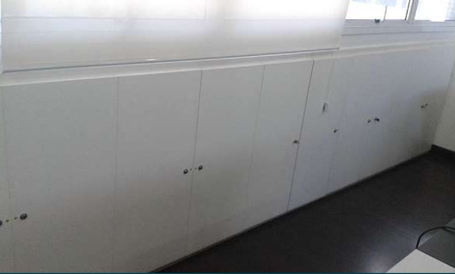 COPA ,FORRO DE GESSO ,AR CONDICIONADO CENTRAL ,SPRINKLERS ,DIVISÓRIAS DE VIDRO ,ESTAÇÕES DE TRABALHO ,SALA DE REUNIÕES ,REVESTIMENTO DE PISO LAMINADO ,ARMARIOS.