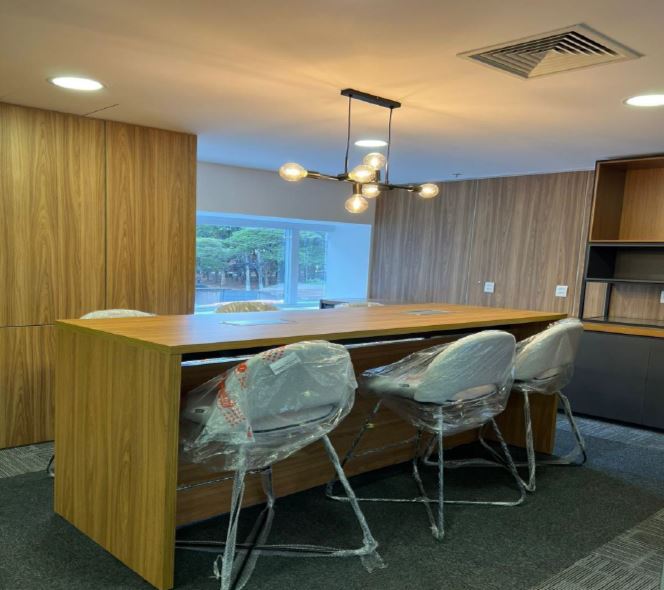 Andar com 292 92 m 2 de area util, 06 vagas 06 wcs e copaPara o andar inteiro e possivel utilizar a recepcao do andarInfra estrutura O edificio possui um total de 13 andares, 02 elevadores sociais, ar condicionado central, gerador 460 kwa para elevador, iluminacao e areas emergenciais, predio 24 horas, estacionamento terceirizado, catracas eletronicasConjuntos com forro de fibra mineral, luminarias e canaleta de pisoAndar totalmente reformado e moveis novos de primeira linha da marca Ricco