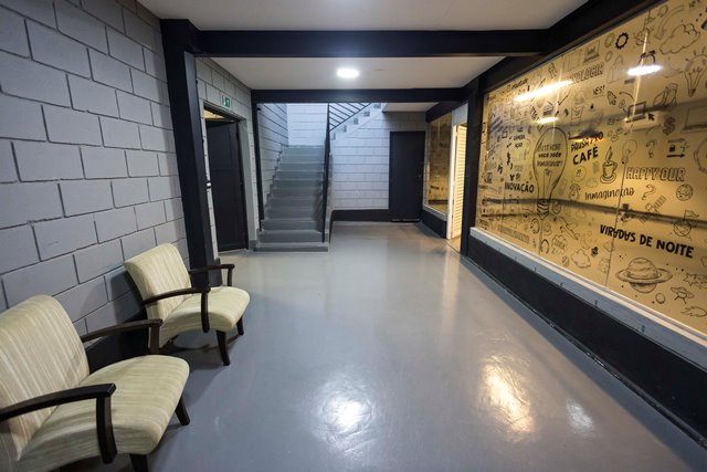 Área de descompressão com cozinha e churrasqueira gourmet, 3 salas no piso superior, sala de TI e corredor técnico. Piso térreo, Hall de entrada, sala de espera, sala de criação, 2 camarins, 1 almoxarifado, 2 salas de produção, um estúdio com chroma key, total de 9 banheiros, sendo 4 no piso superior, 4 no térreo e 1 PNE.Área Construída: 460,00 m²Área de Terreno: 337,02,00 m²Piso Térreo: 229,50 m²Piso Superior: 107,52 m².Pé direito Térreo: 3,00 m²Pé direito superior: 3,5 m².Pé direito estúdio: 7,30 m².Possui refeitório.Área externa para estacionamento.